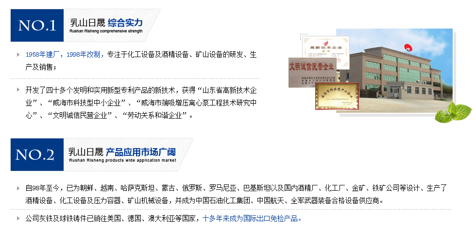乳山市日晟機械制造有限公司位于山東省乳山市城區工業(yè)園日照路82號。公司地處膠東半島南端,東毗威海,北臨煙臺,西近青島,南瀕黃海,依山傍海,交通便利。公司于1958年建廠,原屬國家輕工部定點設備生產廠家,自1998年改制后,現有員工128人,其中工程技術人員26人,加工設備齊全,占地面積3萬平方米,是集鑄造生產、機械加...